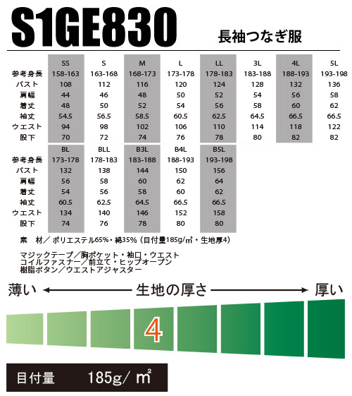 サイズ: SS / S / M / L / LL / 3L / 4L / 5L / BL / BLL / B3L / B4L / B5L