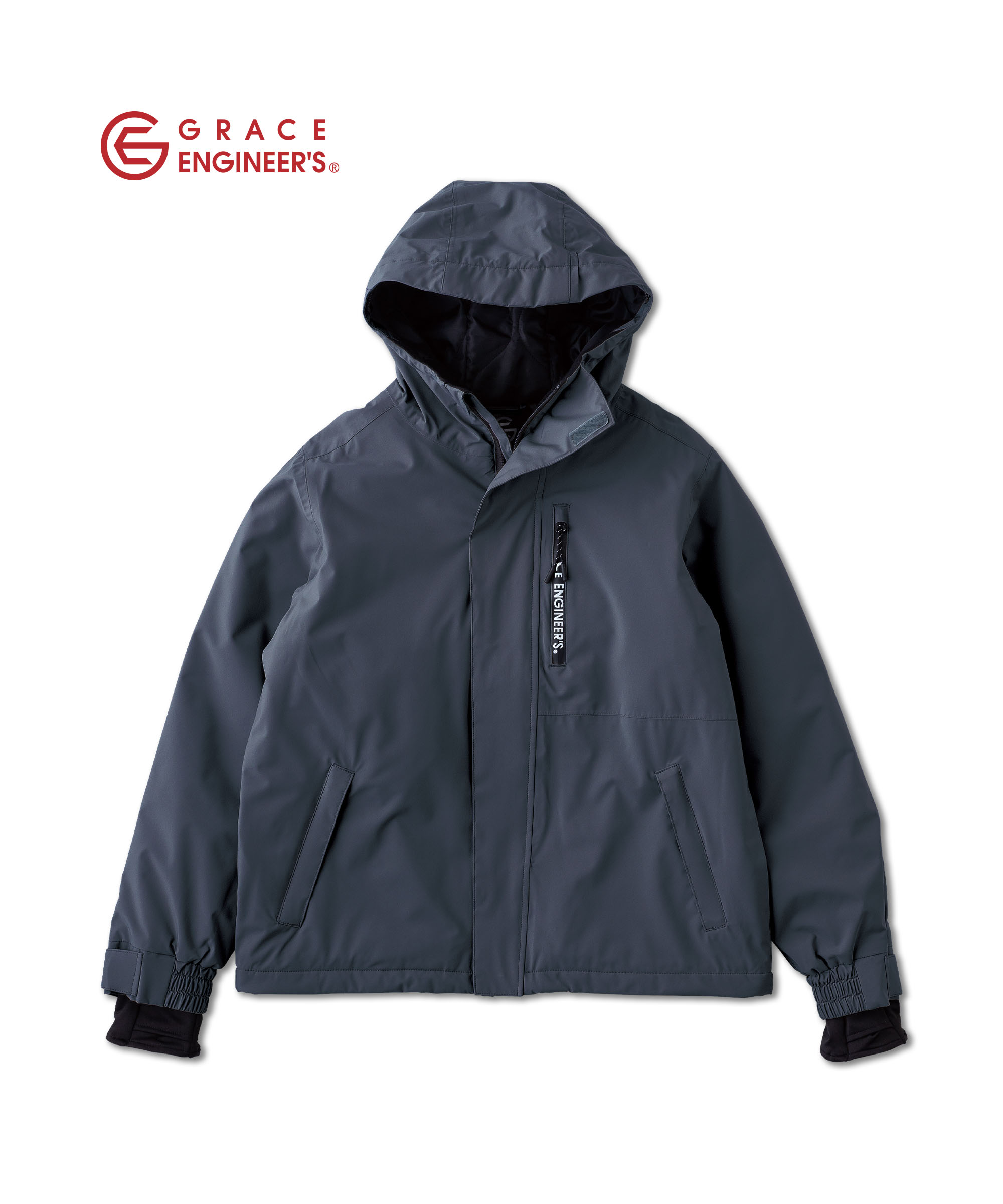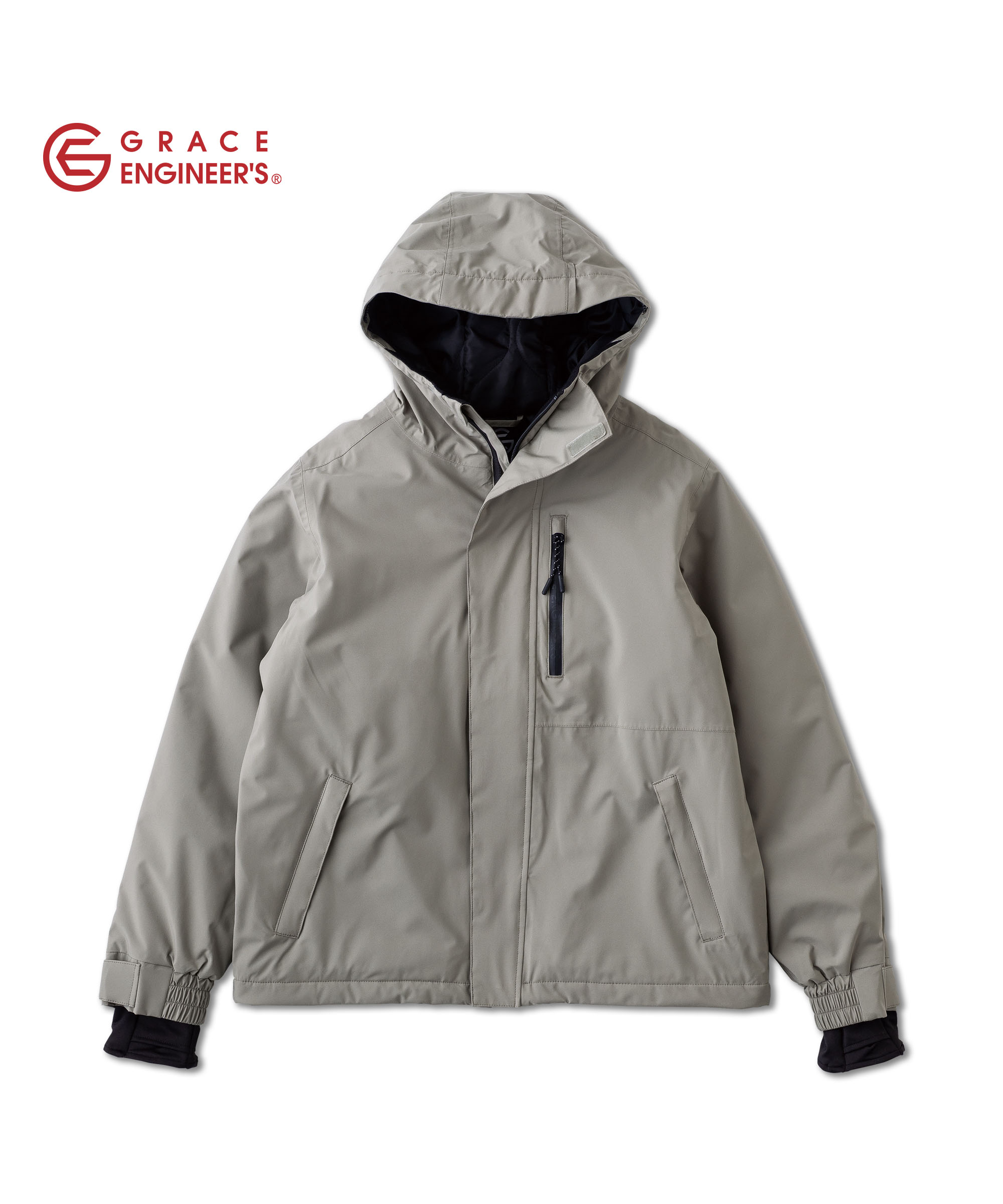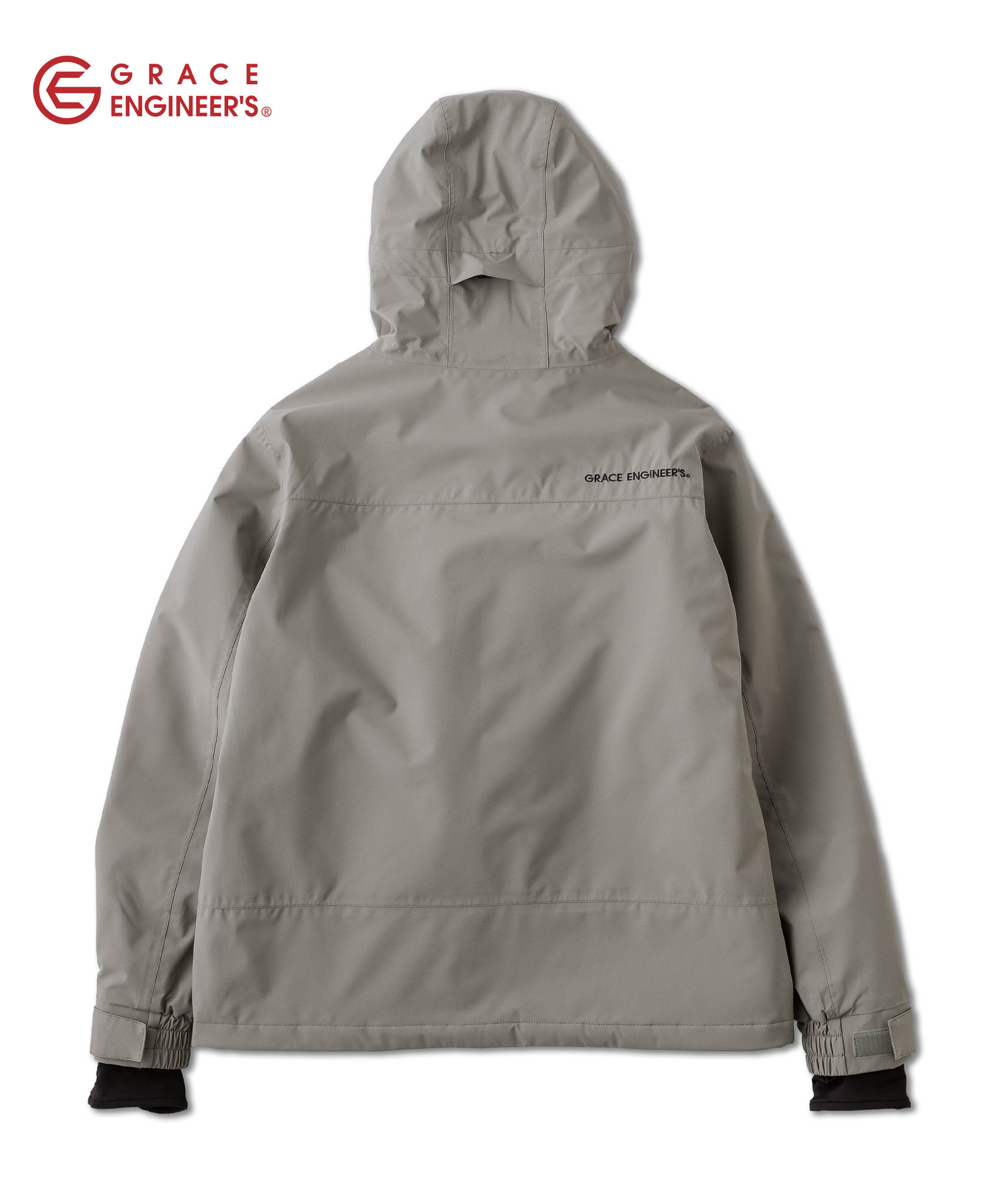 防風・防水のシェルジャケットです。つなぎの上から着用した際に絶妙なバランスの丈がこだわりです。