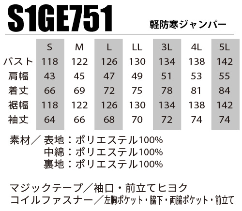 サイズ: S / M / L / LL / 3L / 4L / 5L