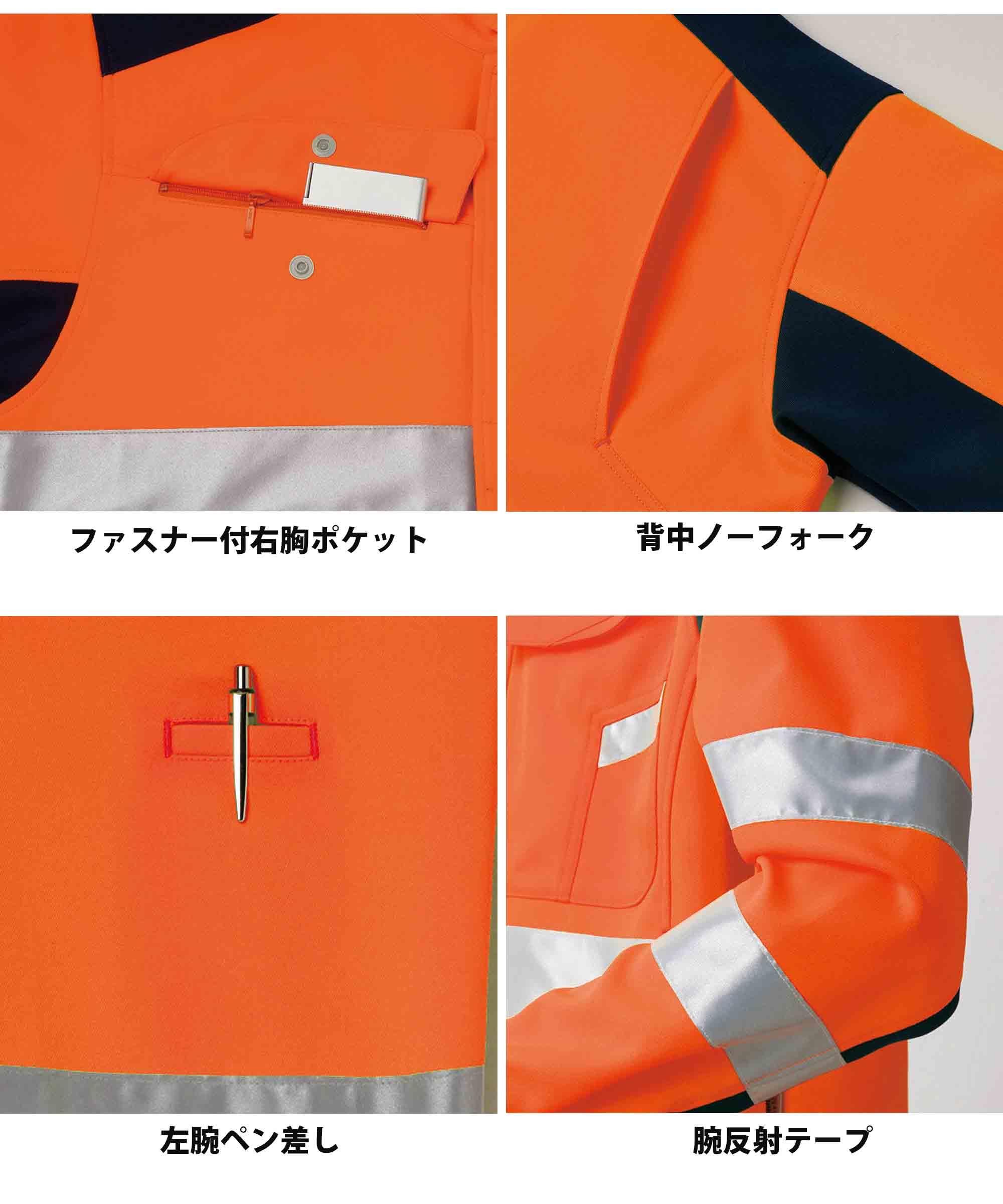 特長: 帯電防止、ストレッチ、3M反射テープ
