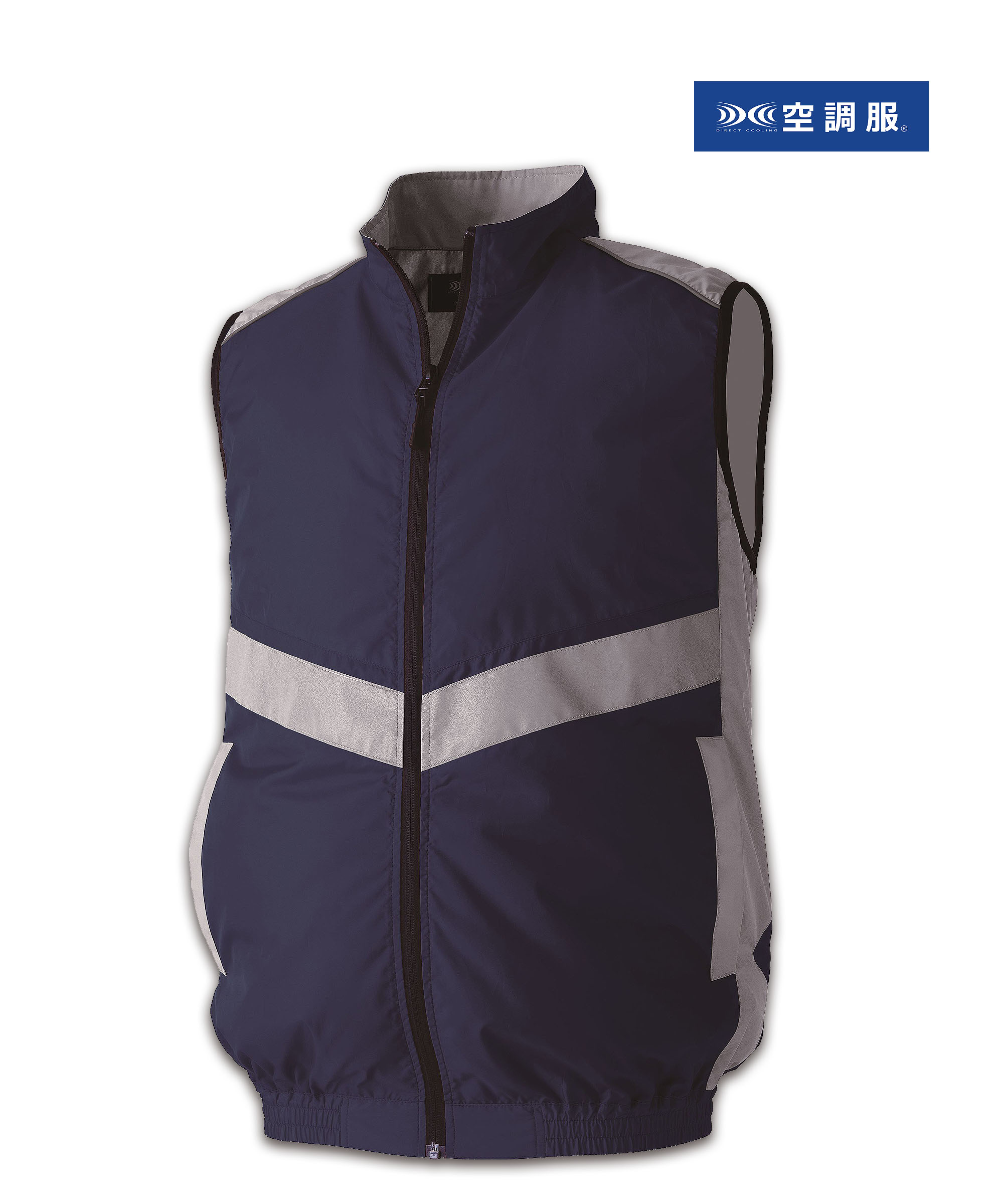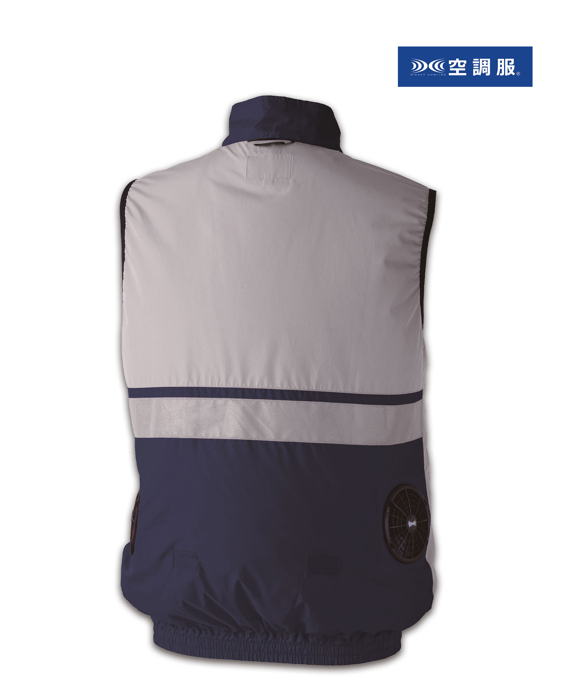 熱中症対策にお勧めな空調ベスト。太めの反射テープを施し視認性を向上させました。温度上昇を抑えるチタンコーティング加工。