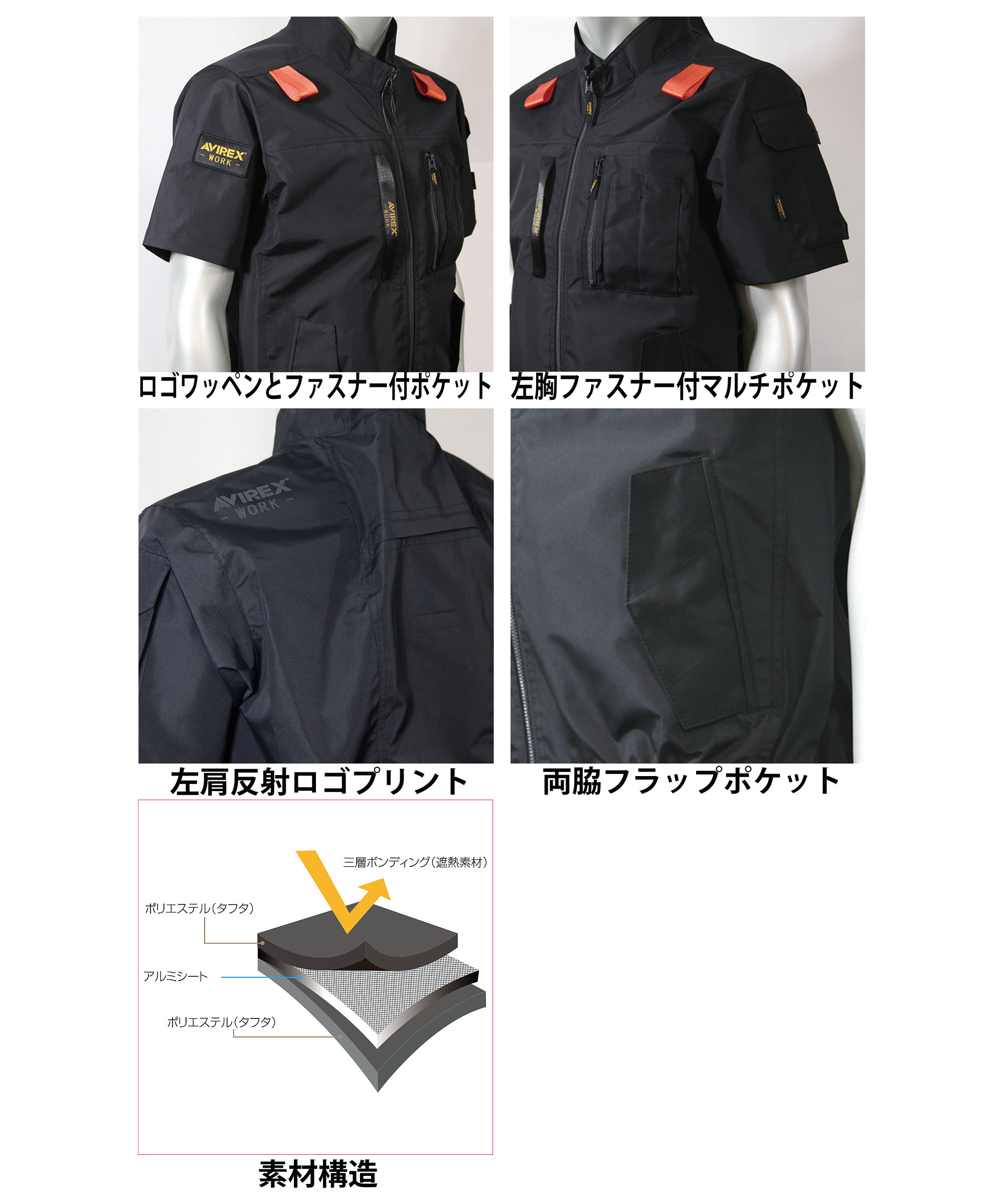 AVREXのサイドファン空調服です。ファッション性と機能性が融合して生まれた商品です。※空調服には、ファンユニットが含まれていません。
