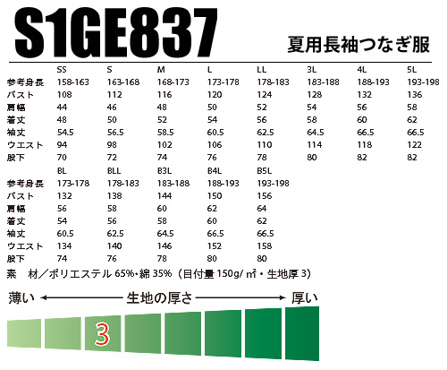 サイズ: SS / S / M / L / LL / 3L / 4L / 5L / BL / BLL / B3L / B4L / B5L