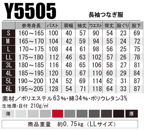 サイズ: S / M / L / LL / 3L / 4L / 5L / 6L