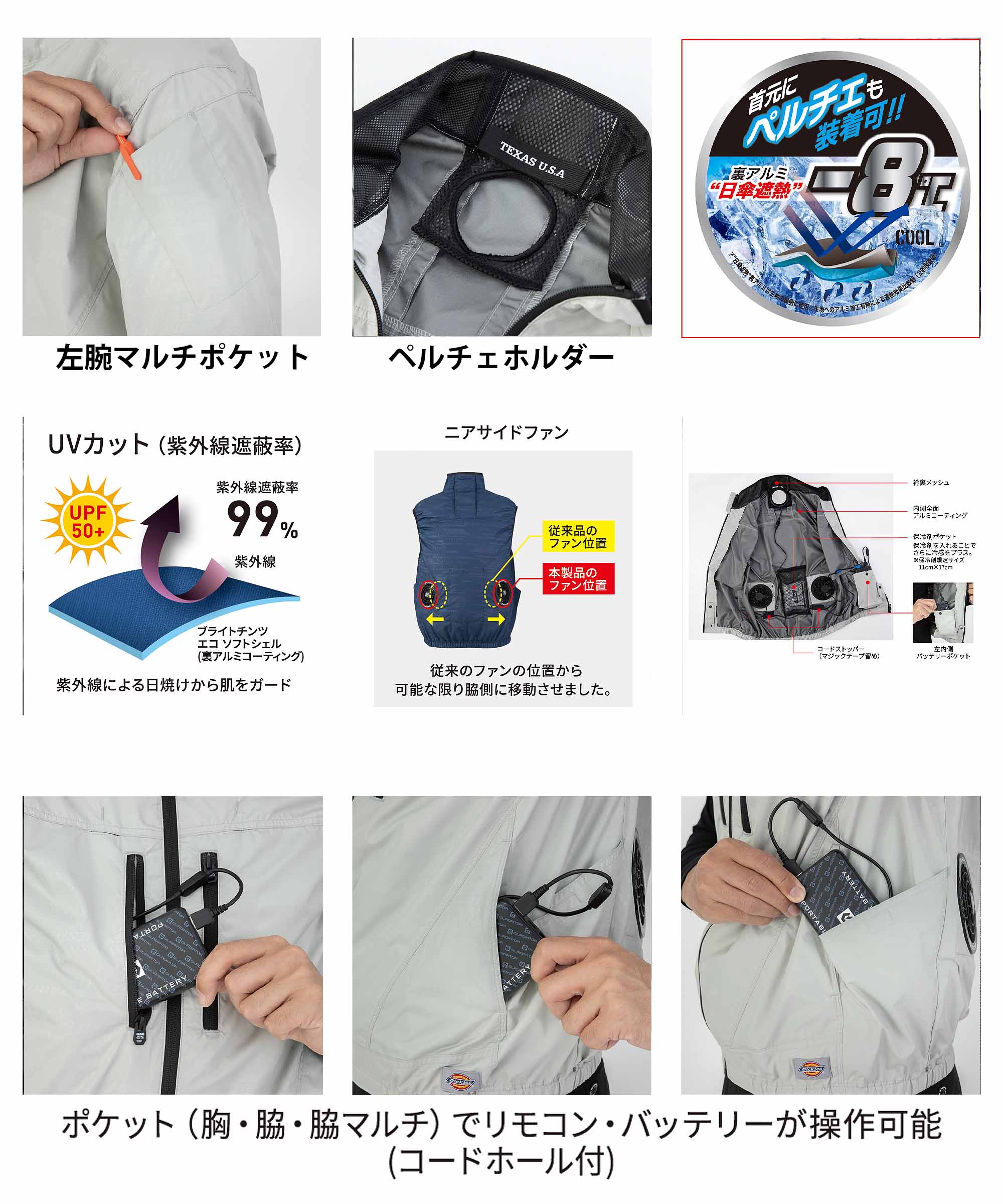 機能: ニアサイドファン ペルチェ着用可 サイズXS、Sはレディース対応