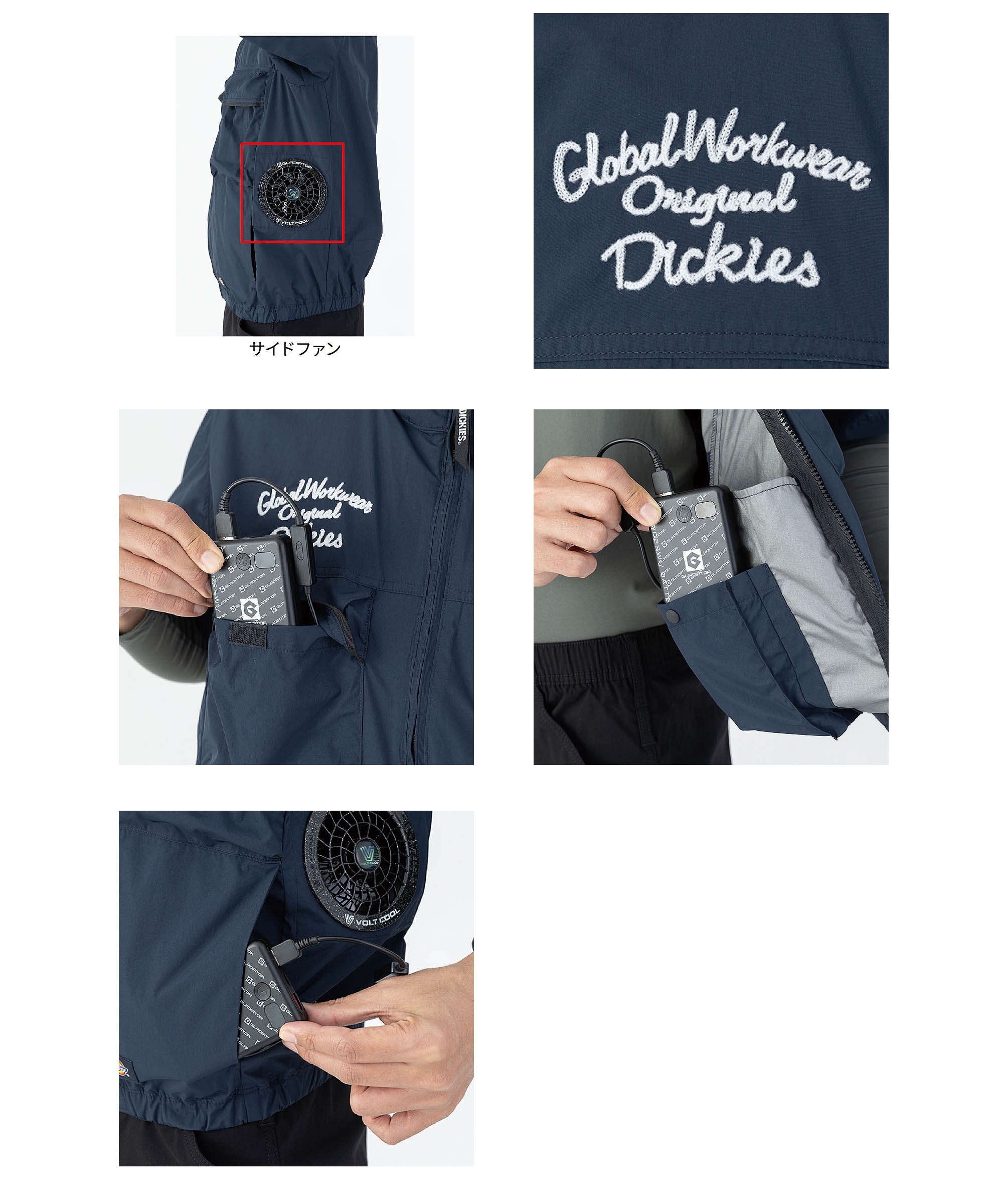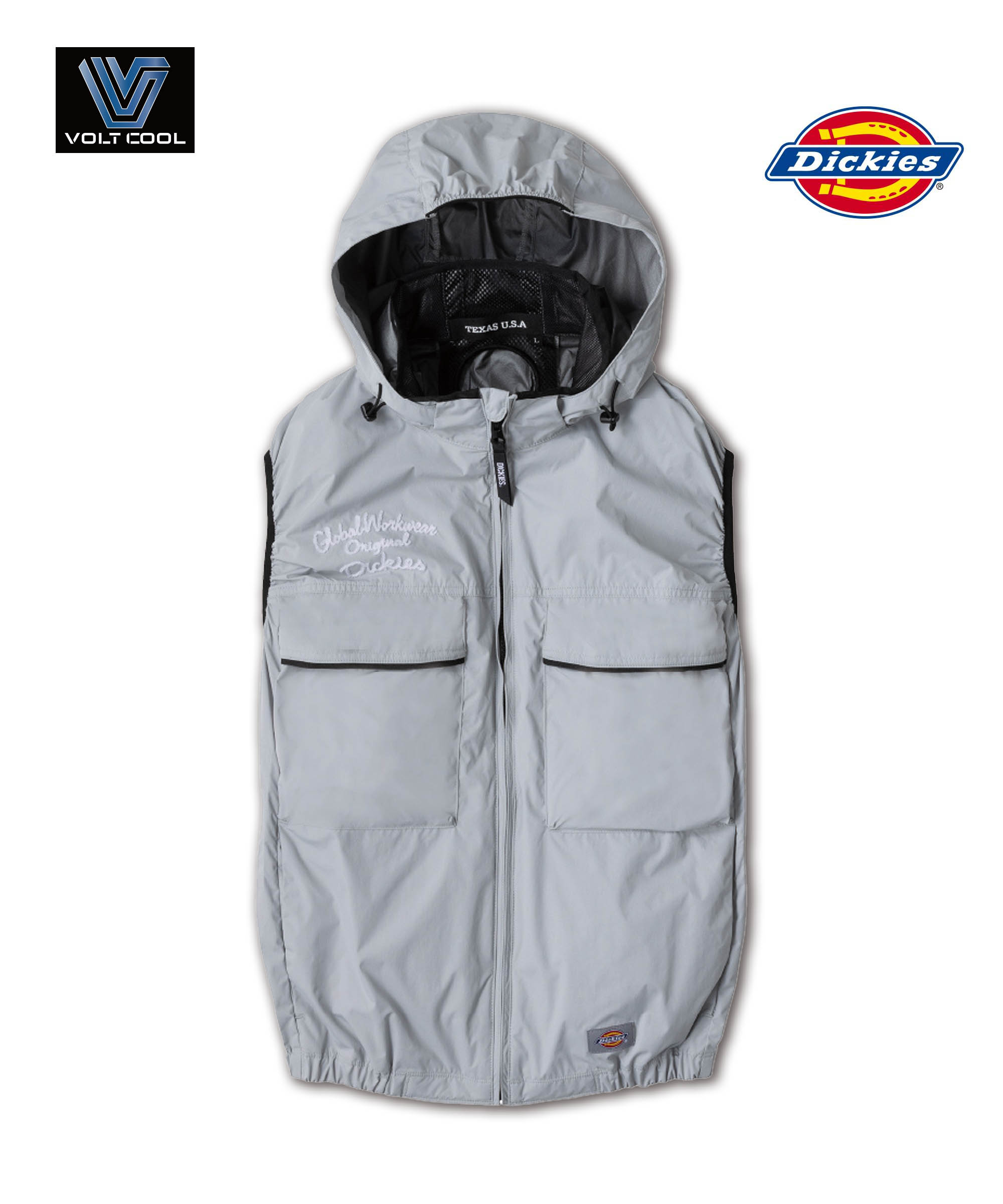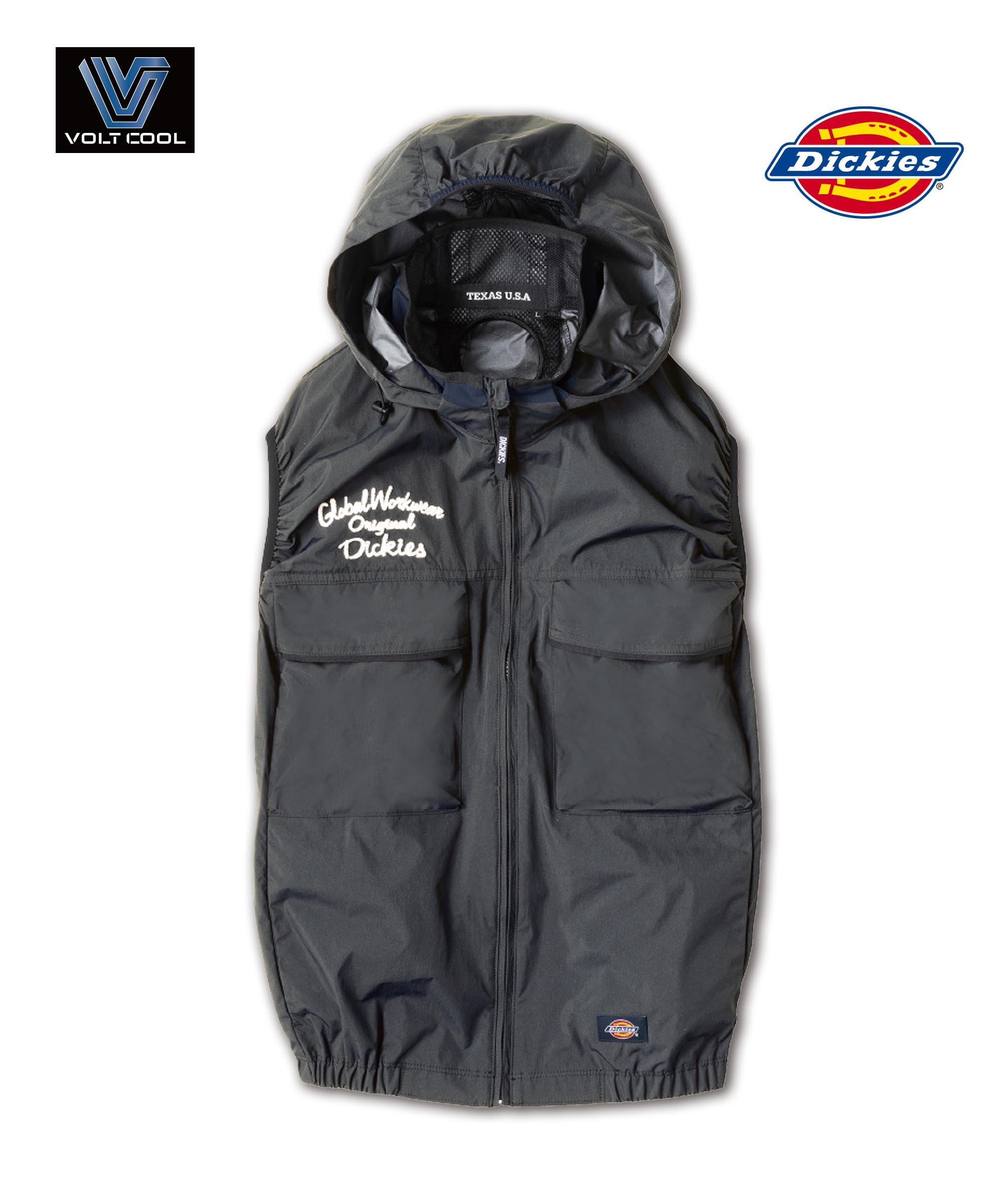 Dickiesの空調服です。機能性とファッション性が融合しました。ご使用には専用のボトルクールファン、バッテリ、ペルチェセットをご利用ください。