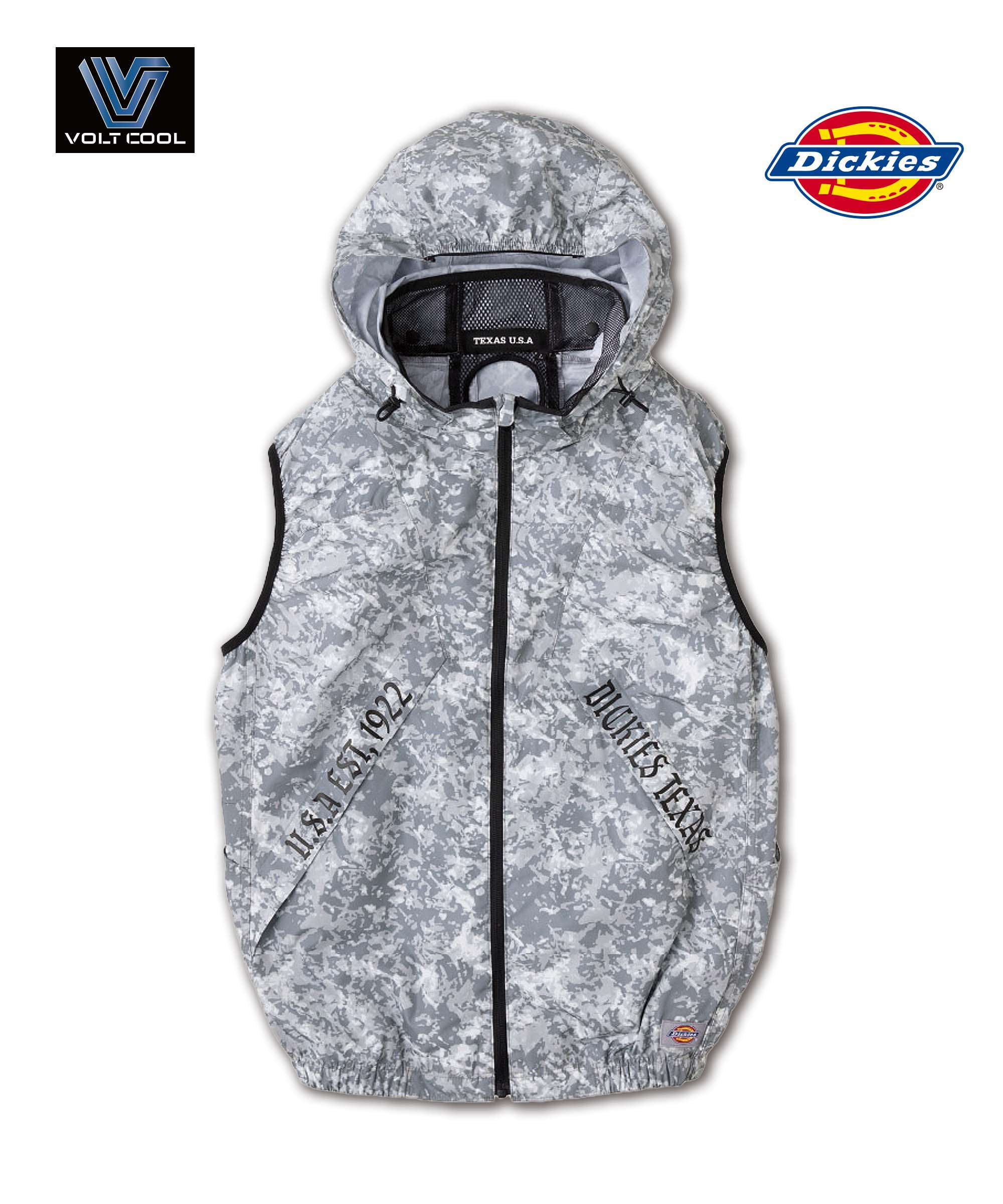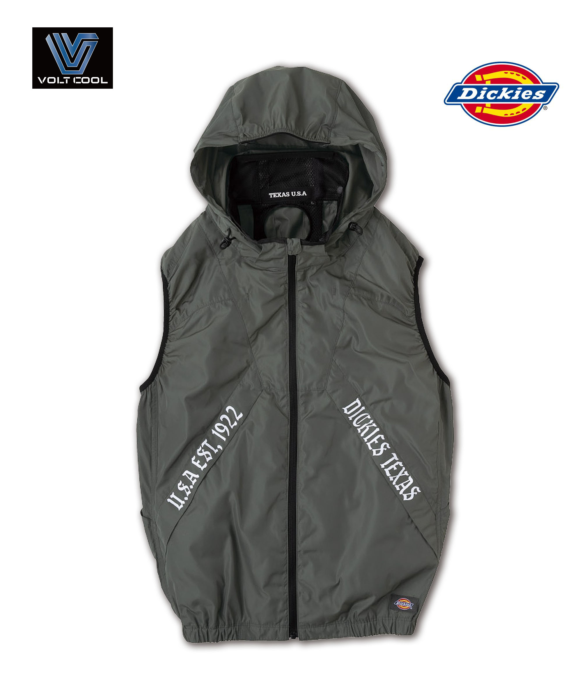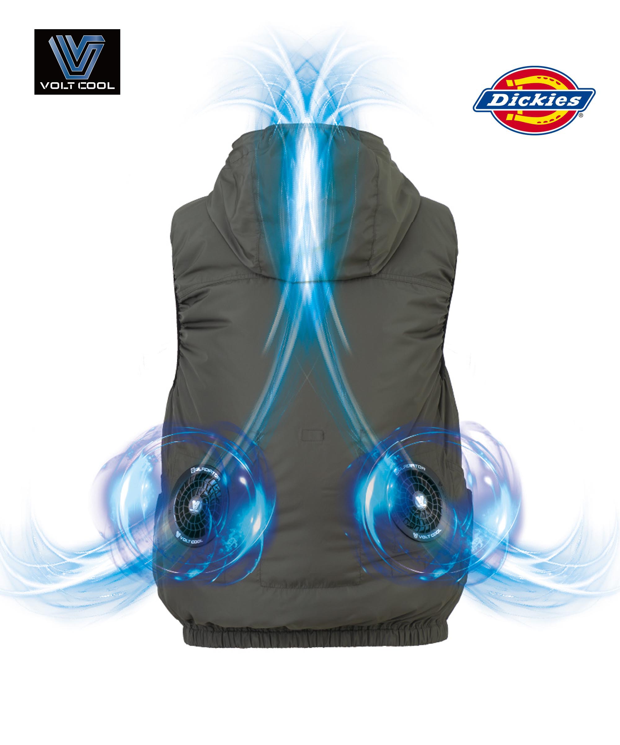 Dickiesの空調服です。機能性とファッション性が融合しました。ご使用には専用のボトルクールファン、バッテリ、ペルチェセットをご利用ください。