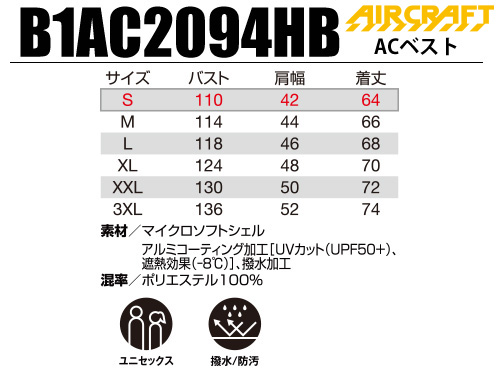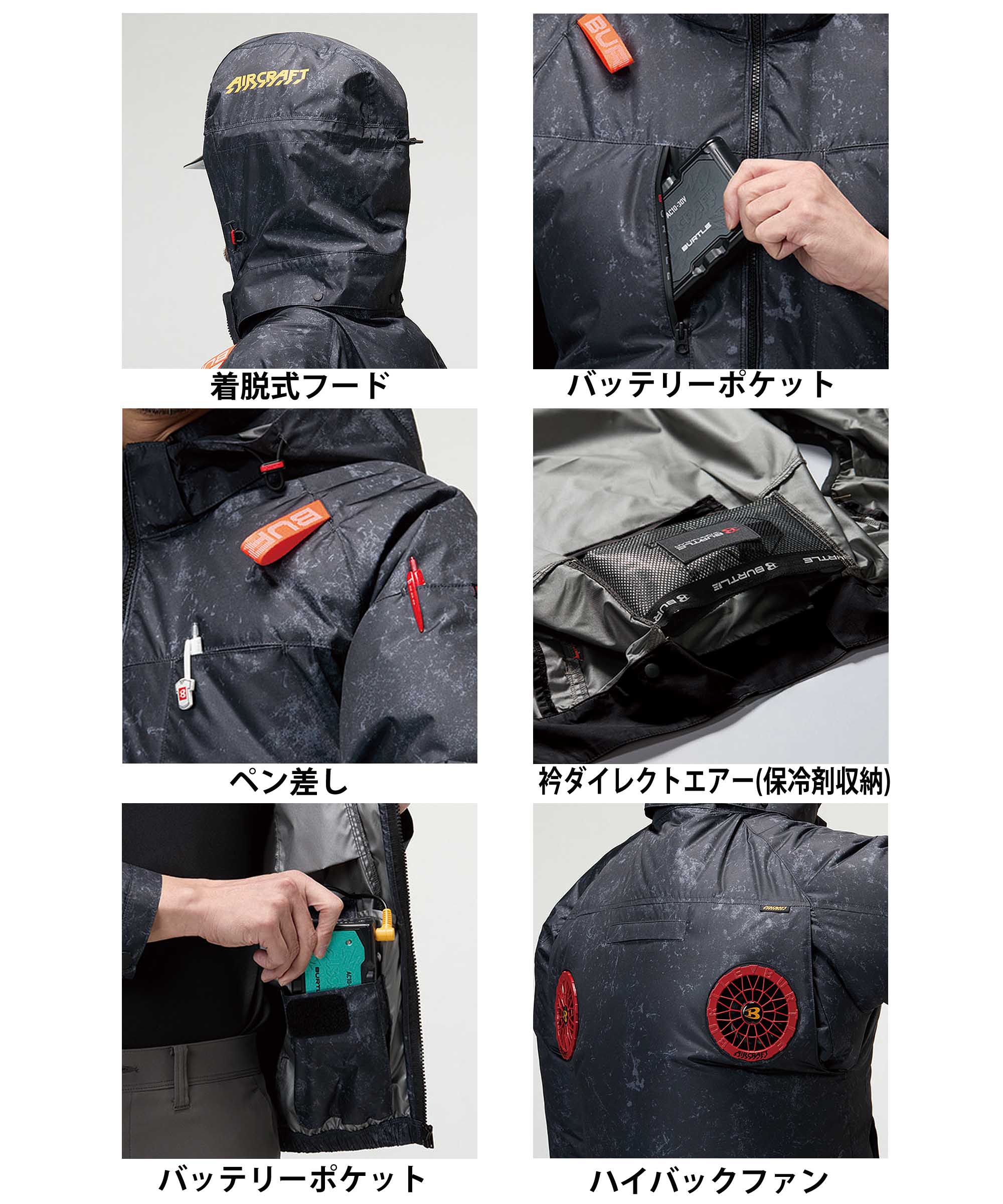 ワークギアの装着への順応性をもたらすハイバックファン。遮熱効果のあるアルミコーティング加工と軽量で撥水性を兼ね備えたソフトシェル素材。ハーネス対応。サイドファンタイプのBAC2094あります。