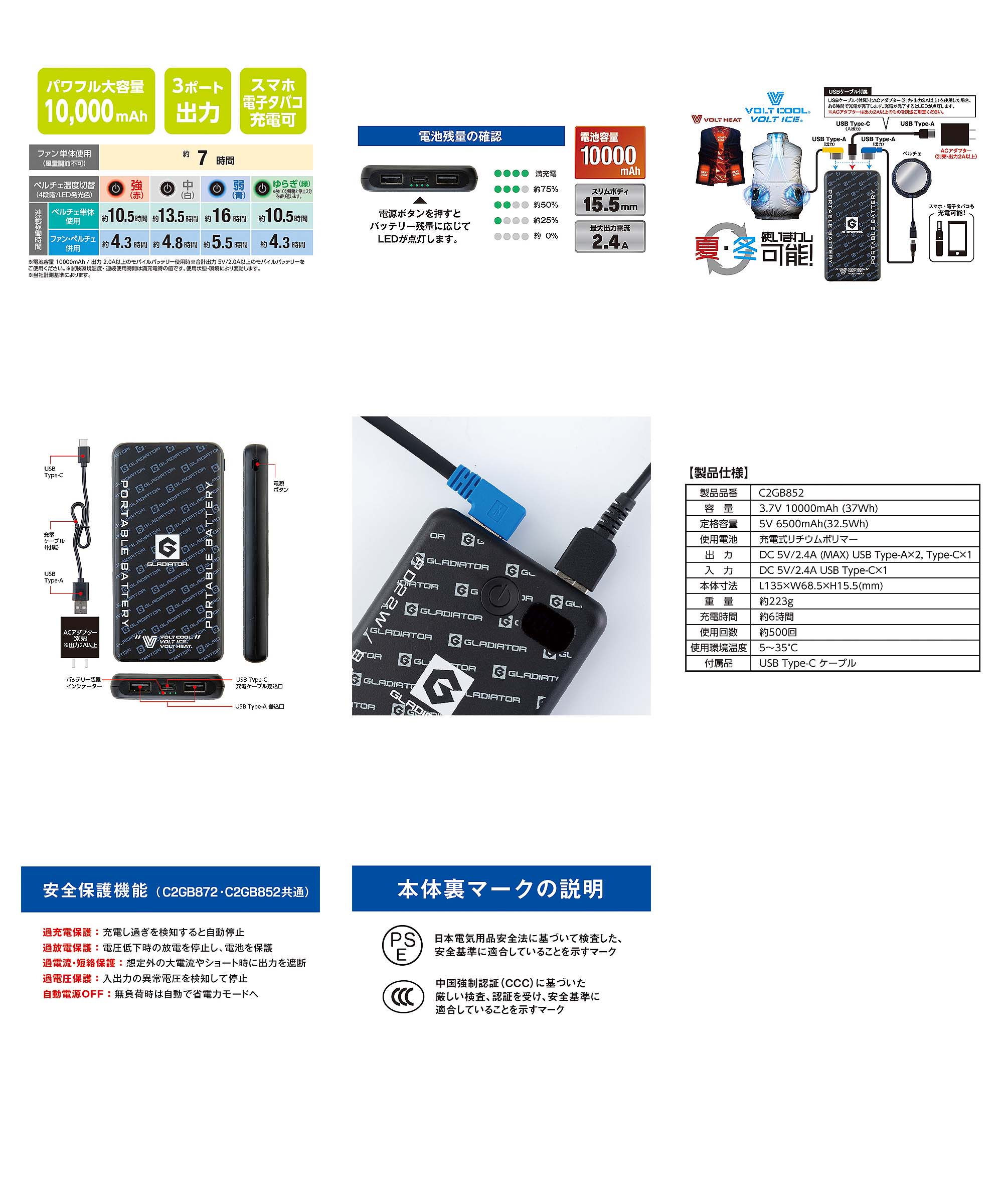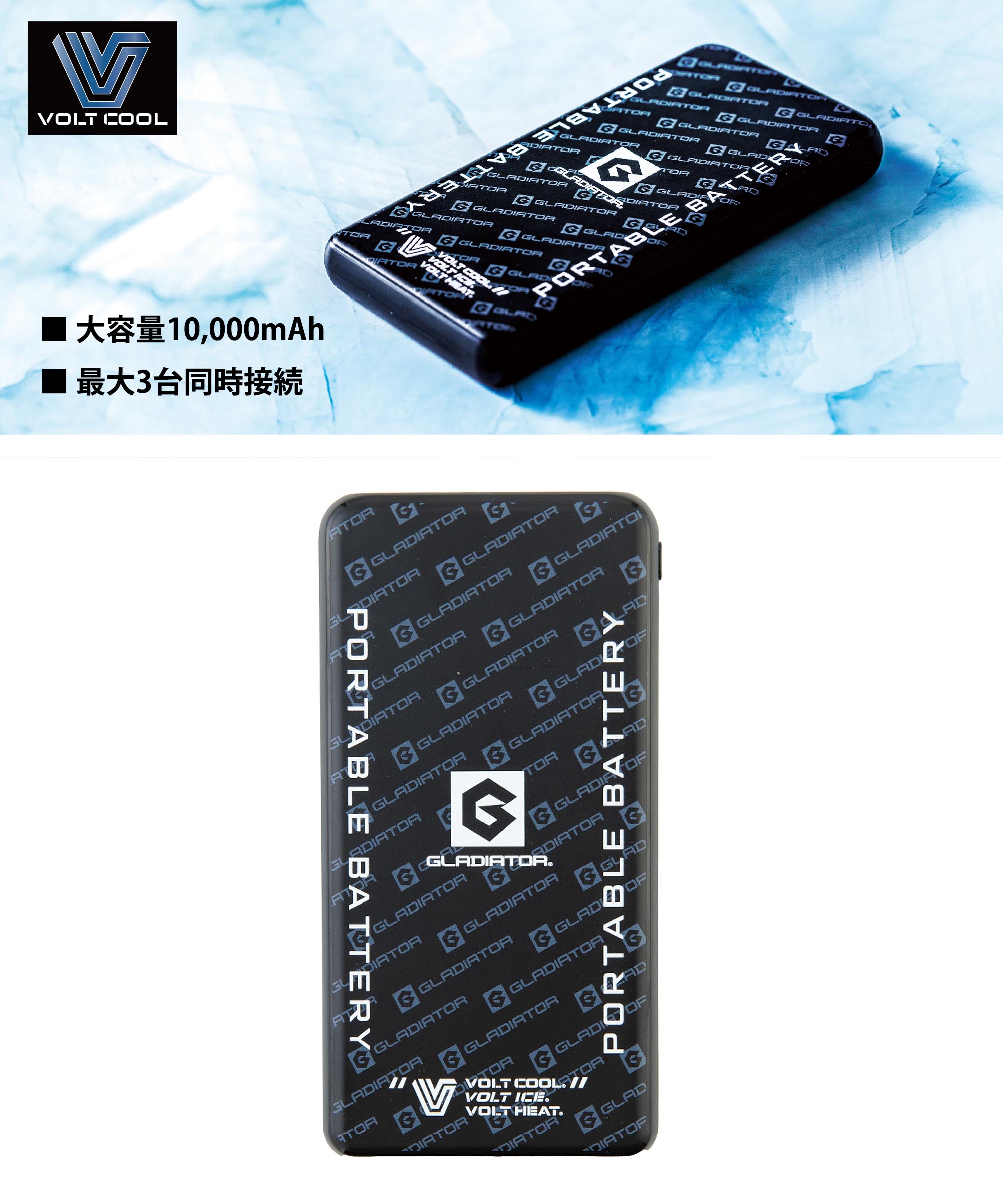 10000mAh最大3台同時接続可能大容量バッテリー。通常のモバイルバッテリーとしても使用できるので外出先でのスマホや電子タバコなどの急な充電にも便利です。*電子機器につき返品交換ができませんのでご注意ください