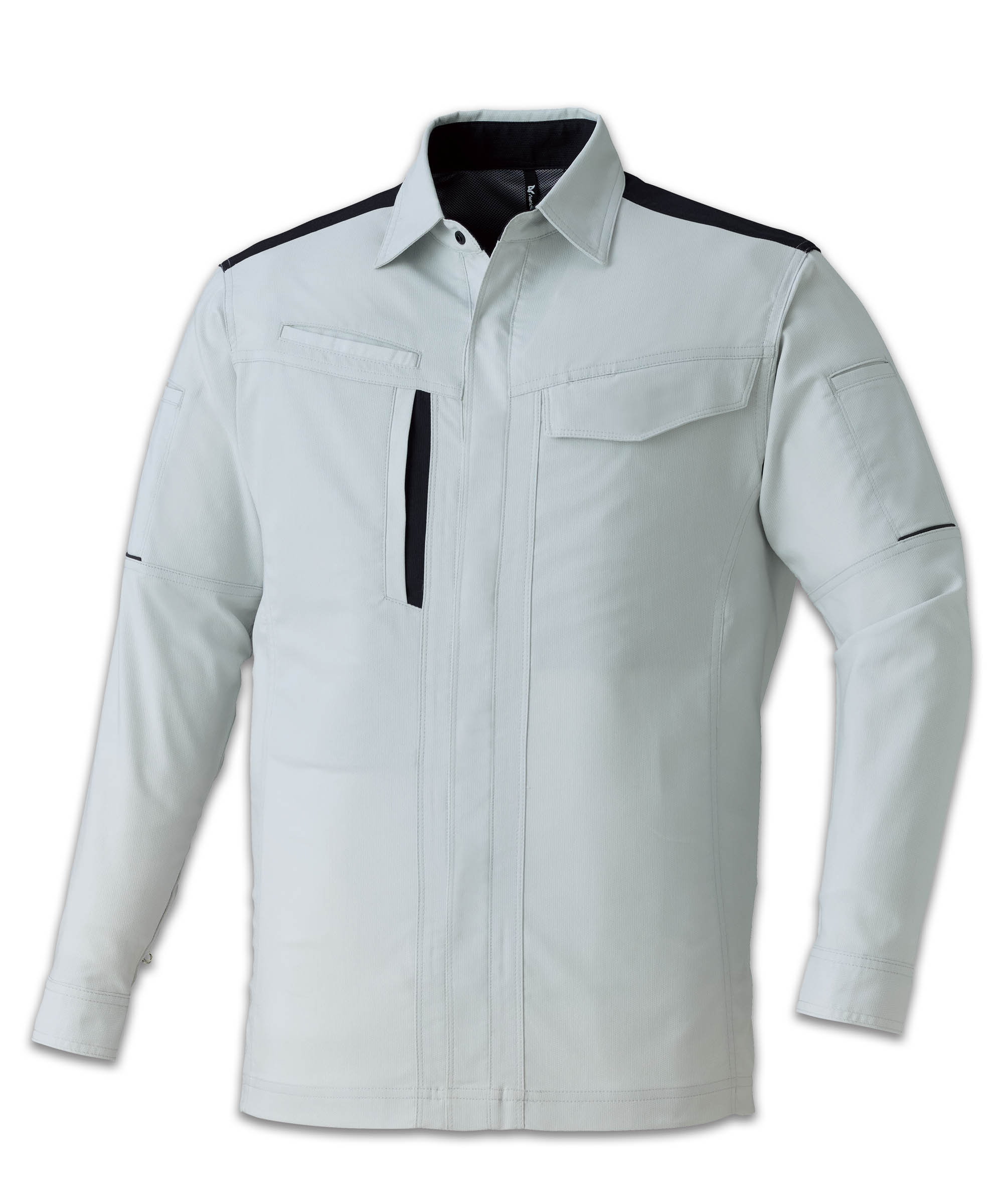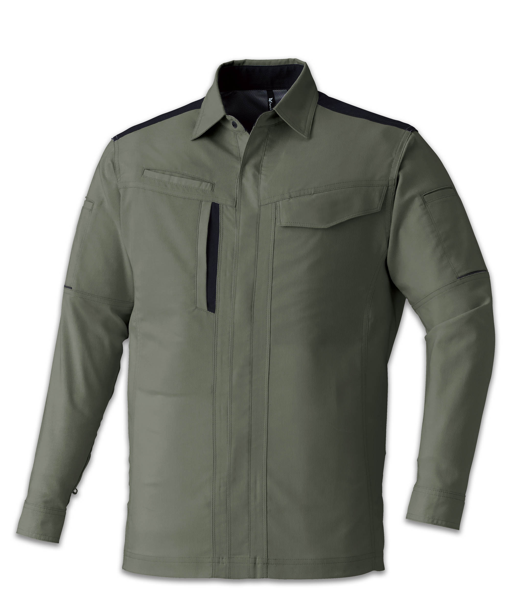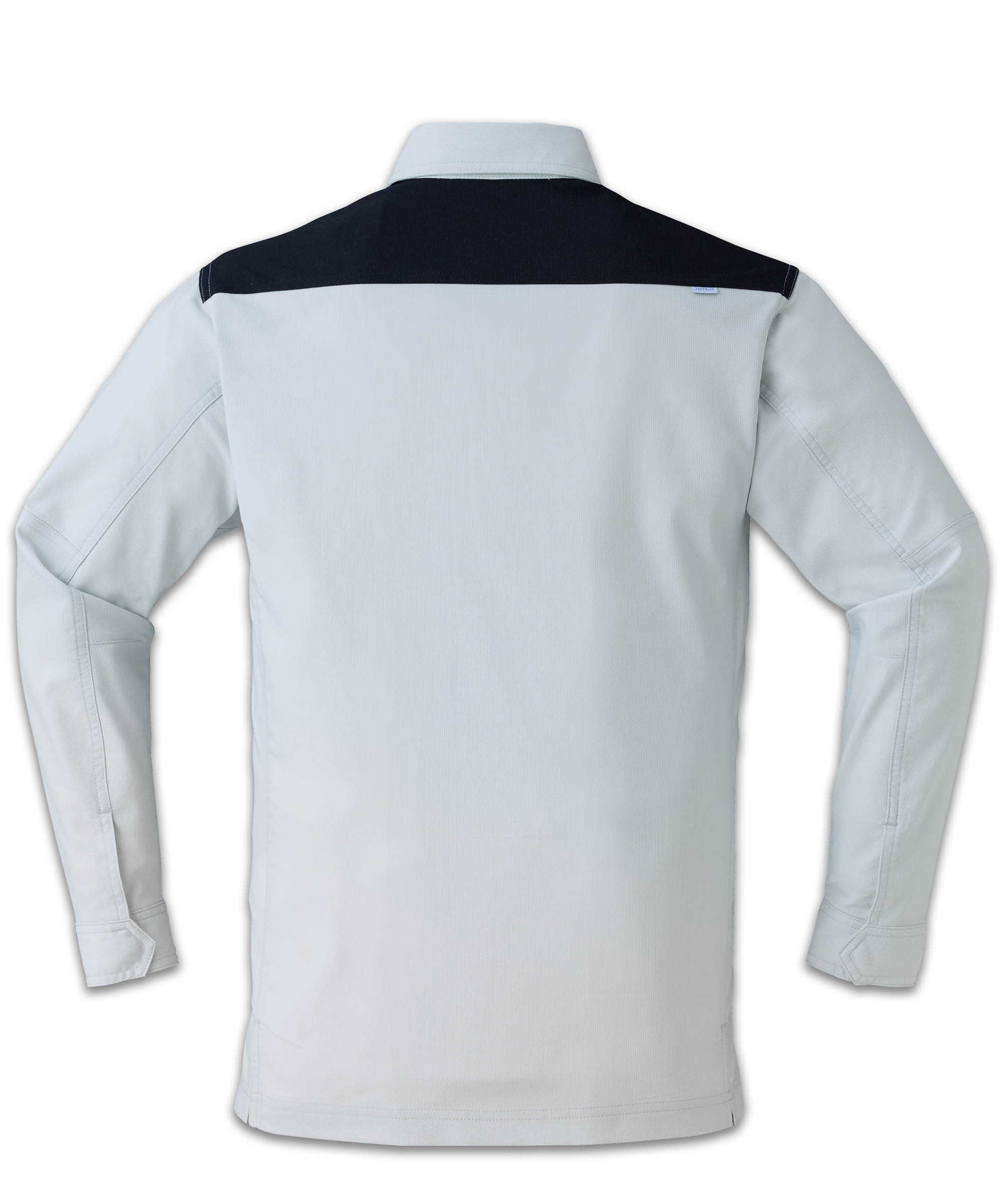 機能: 背裏一部メッシュ、両袖ペン差し、衿配色仕様、反射材使用