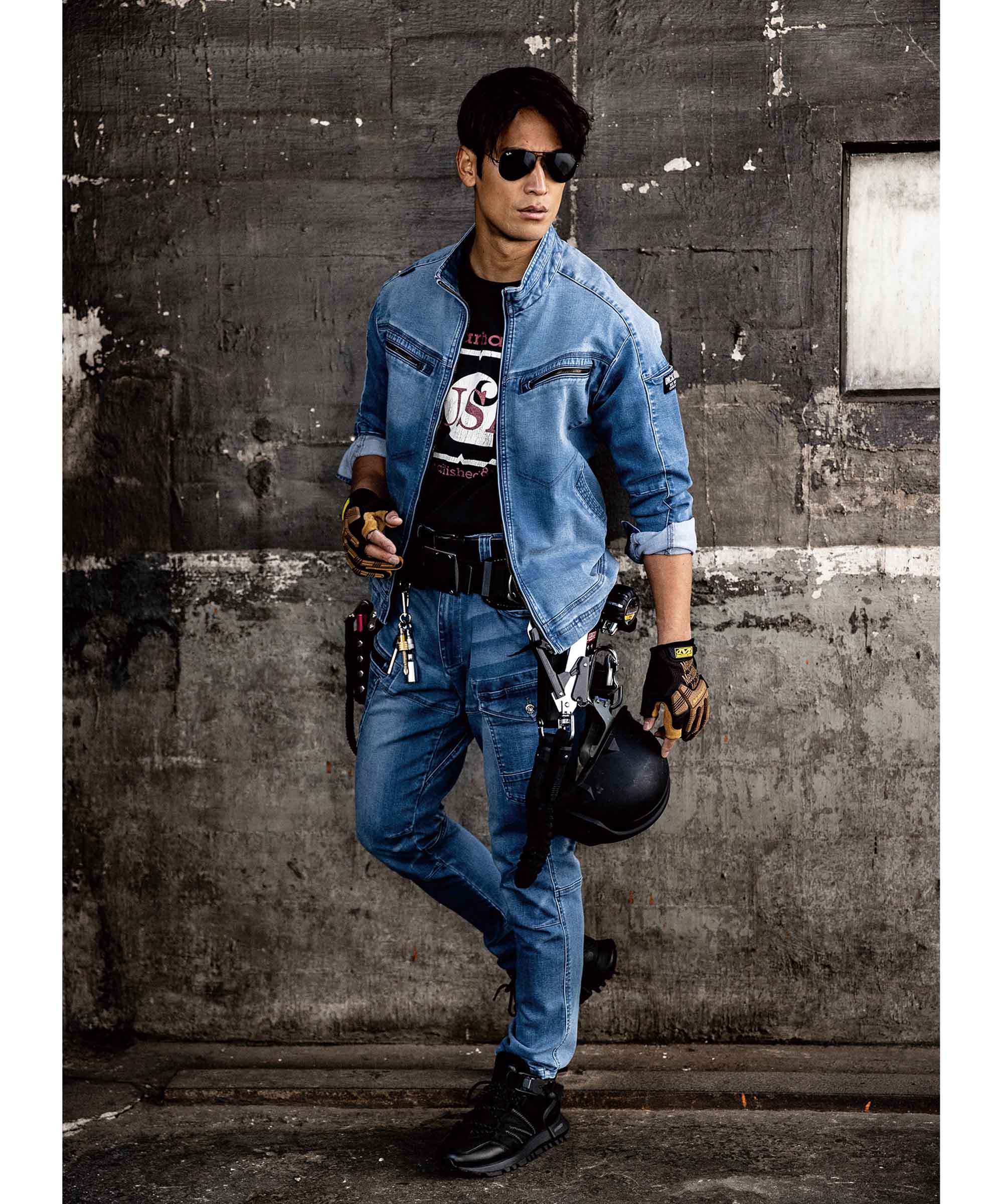 デニムにシルキーな光沢感と肌触りをプラスした、ストレッチのきいたとても着やすいシリーズ。