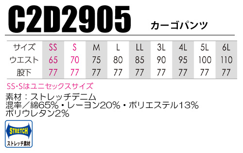 素材: 綿65%レーヨン20%ポリエステル13%ポリウレタン2%